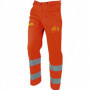 70% polyester 30% coton, 240 gm². Tissu double face : polyester face extérieure pour une importante résistance mécanique et coton sur la face intérieure pour le confort. Finition fluocarbone, déperlant. Protection scie à chaîne 9 couches, technologie Sofly® Bandes retroréfléchissantes au bas des jambes. Ceinture élastiquée avec boutons pour bretelles réf. 15861 (à commander séparément), 4 poches, 1 poche mètre, bavette dorsale. Entrejambe : 78 à 86 cm selon la taille, progression de 2 cm par taille Poids : 1,600 kg Coloris : jaune fluo, orange fluo Taille : S à XXL Norme : CE Cat III - EN 381-5 classe 3 - type A - EN ISO 20471 (2)