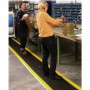 Tapis noir avec bordures jaunes. Antidérapant, en mousse de vinyle pour utilisation en milieu sec. Idéal en équipement de chaine de montage, d'assemblage et postes de travail en milieu industriel. Isole du froid et réduit le bruit et la casse. Bords étanches et biseautés avec marquage jaune de sécurité. Solution pour réduire la fatigue au travail en station debout occasionnelle. Rouleau de 18,30 m en trois largeurs. Épaisseur : 9,4 mm Prix au mètre linéaire.